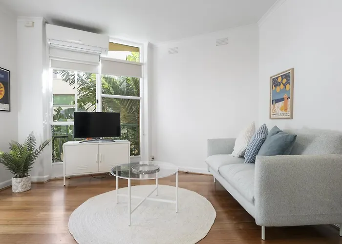 Tijdens een verblijf in Seaside 1-Bed Stay Near Cafes & Attractions Melbourne appartement kunnen gasten zich ontspannen op een patio binnen 4 km van de Koninklijke Botanische Tuinen van Melbourne. Gasten kunnen gebruikmaken van Wi-Fi voor zaken of vrije tijd.